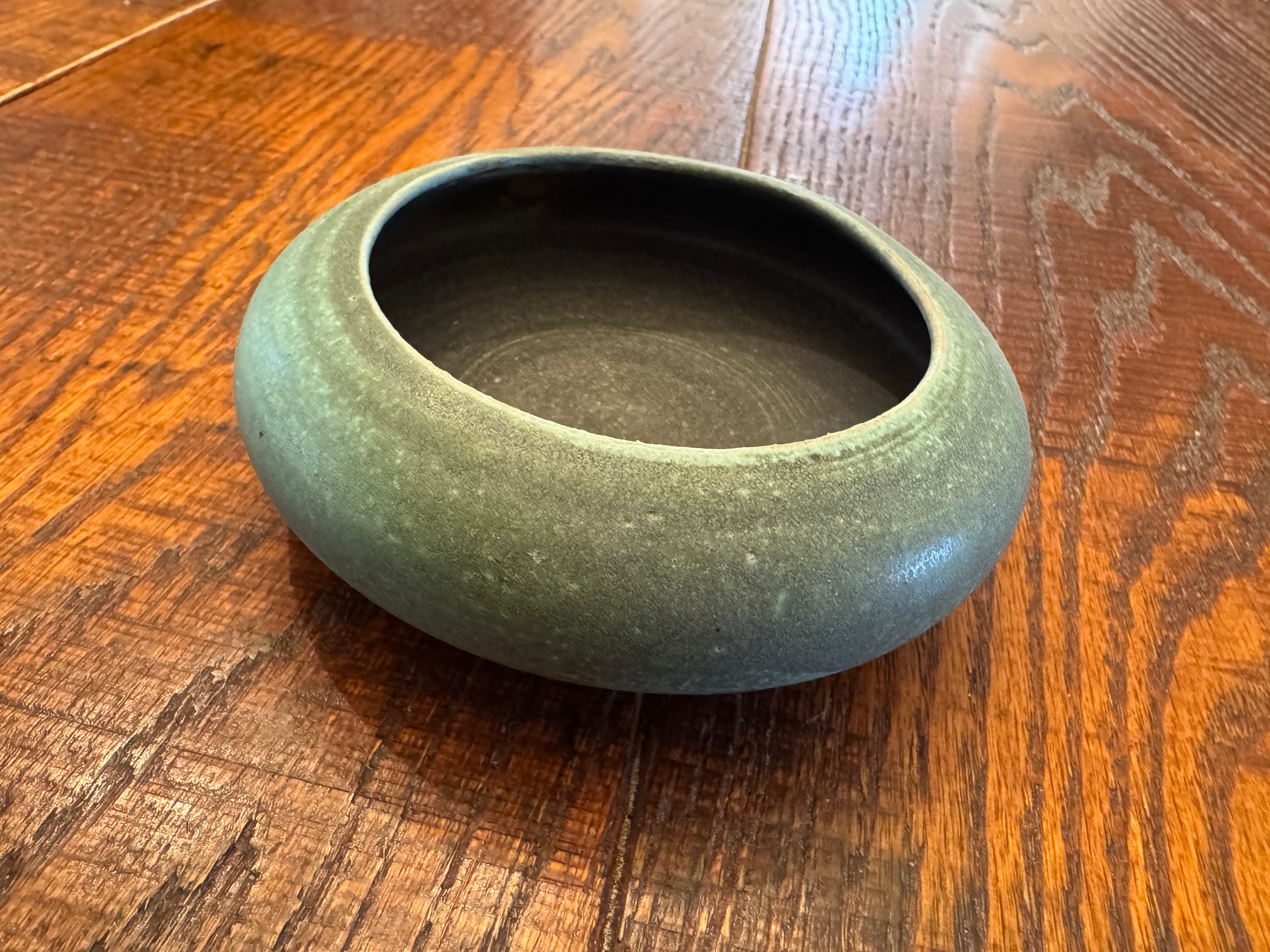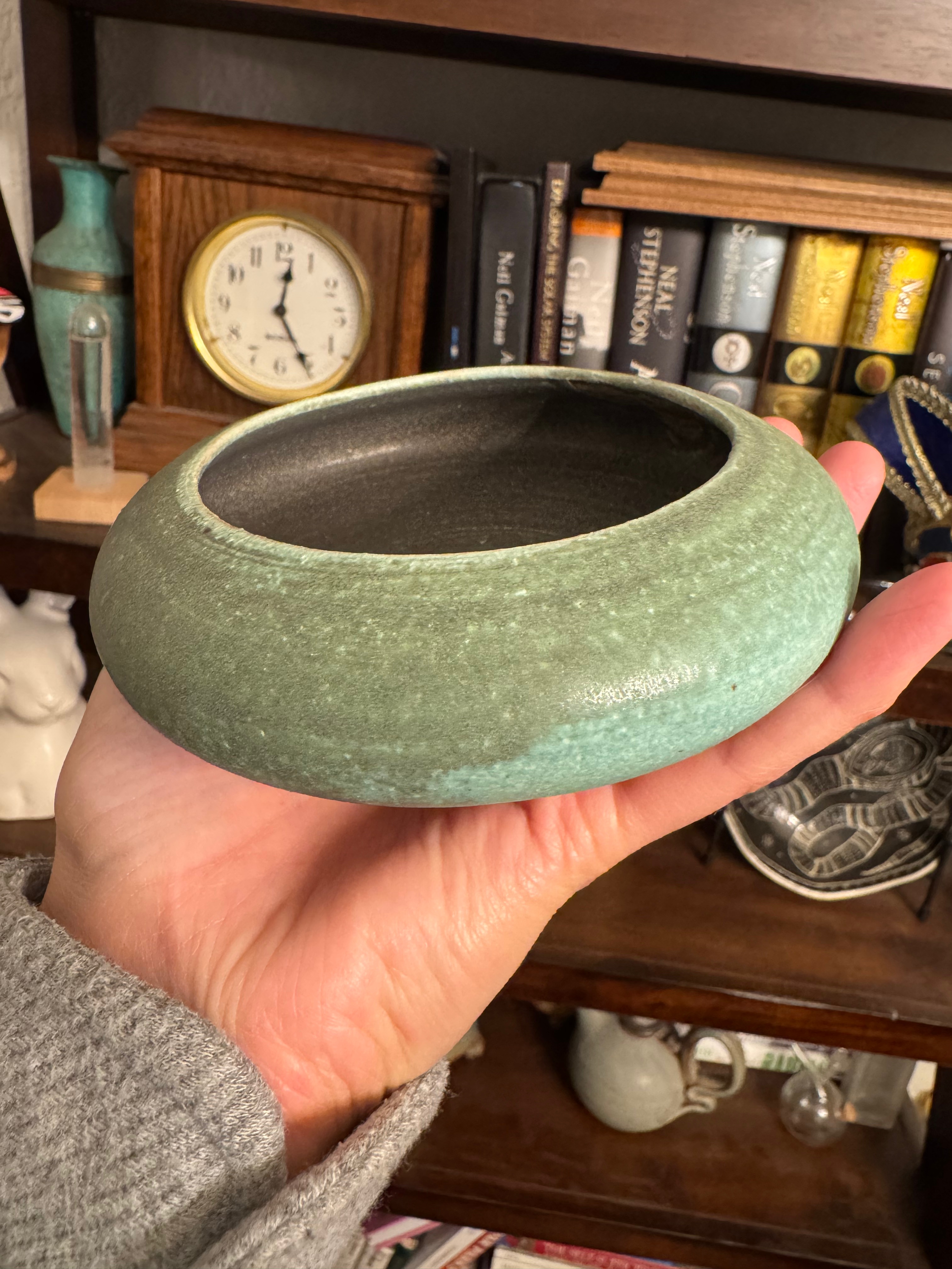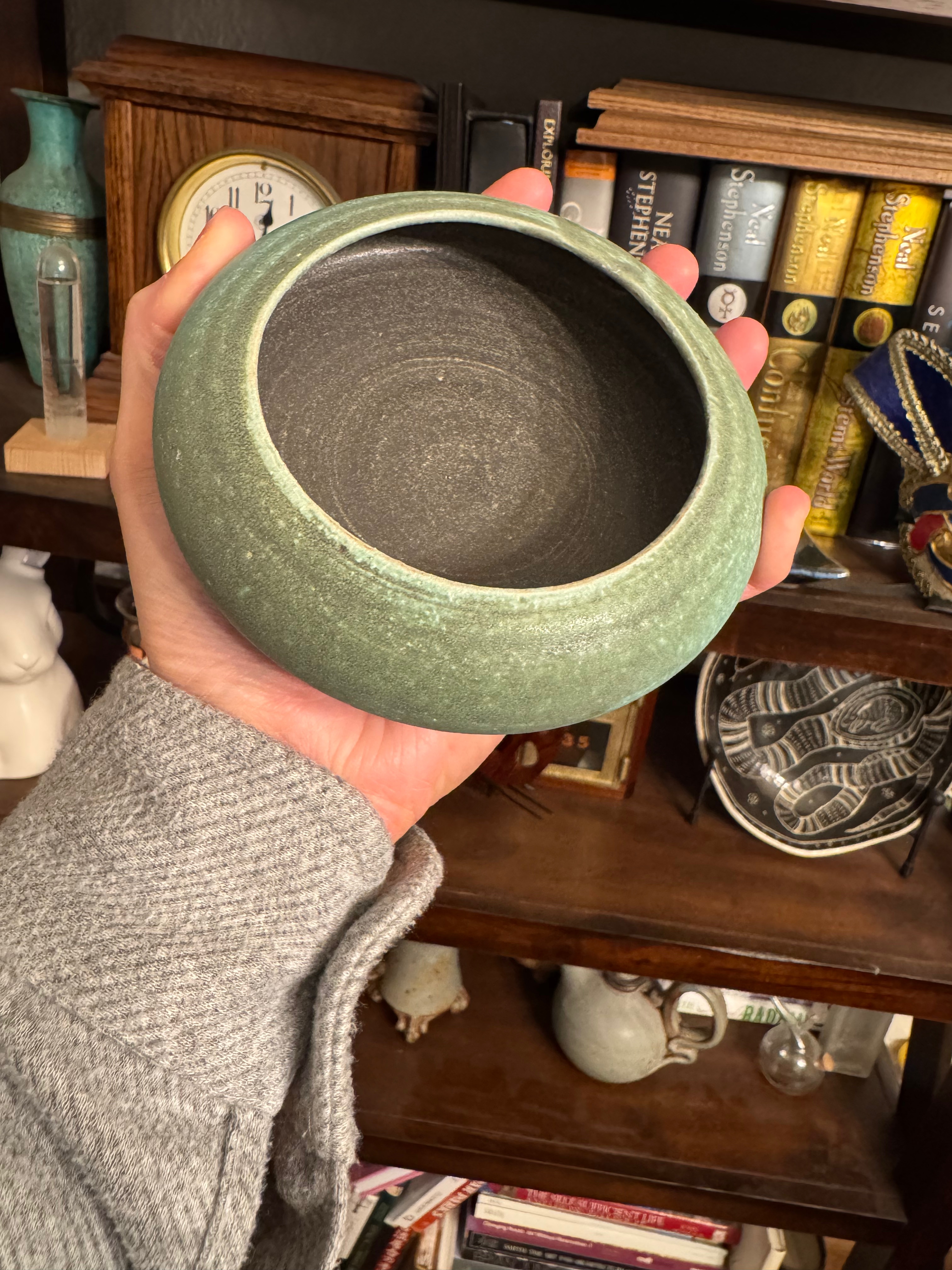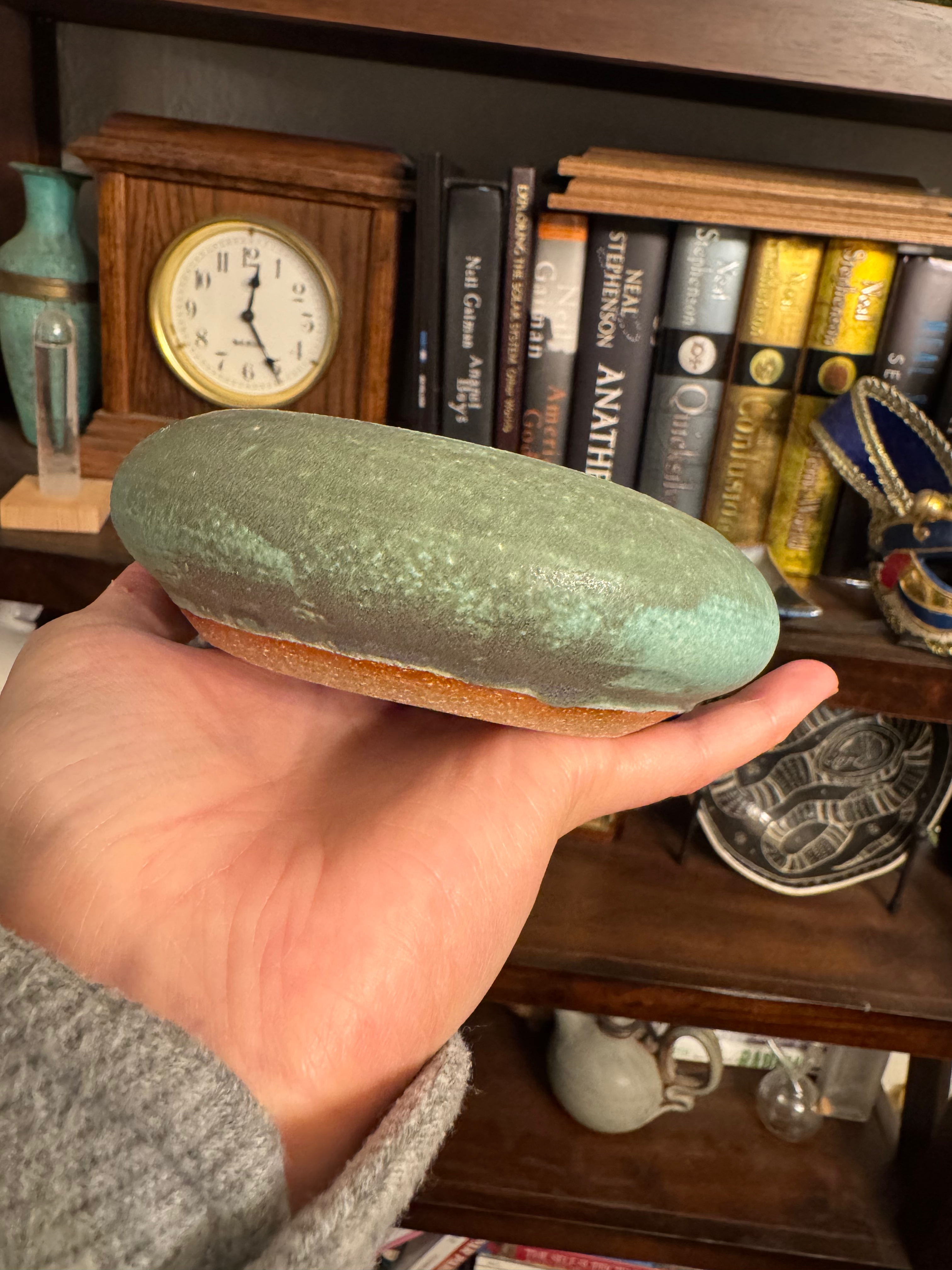 one of the first bowls i threw on the wheel after picking ceramics back up again. brown clay with blue black glaze.